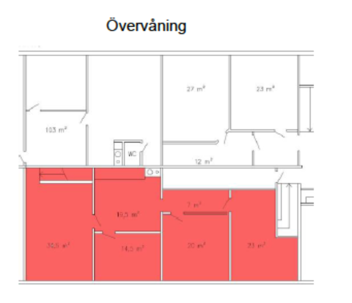Kontoret ligger en trappa upp och är på 119 kvm.