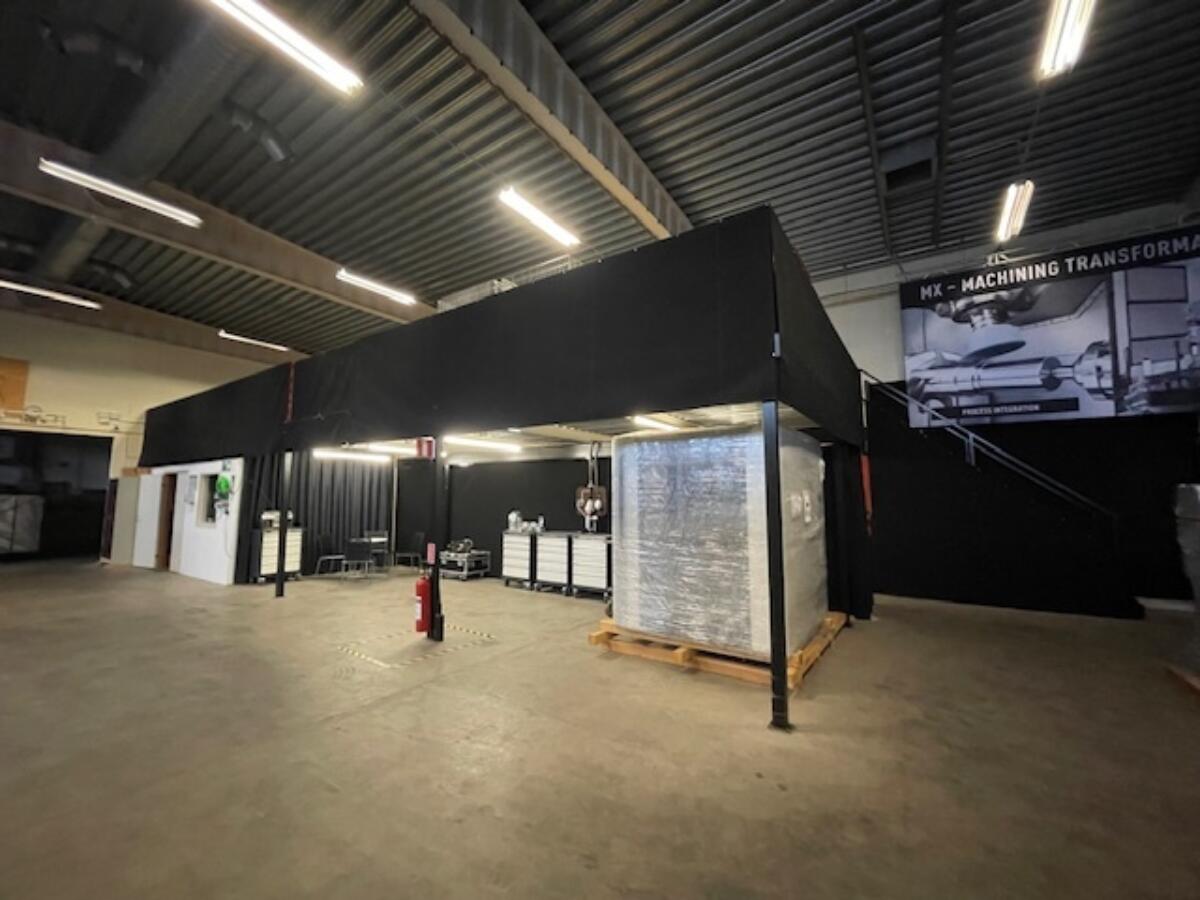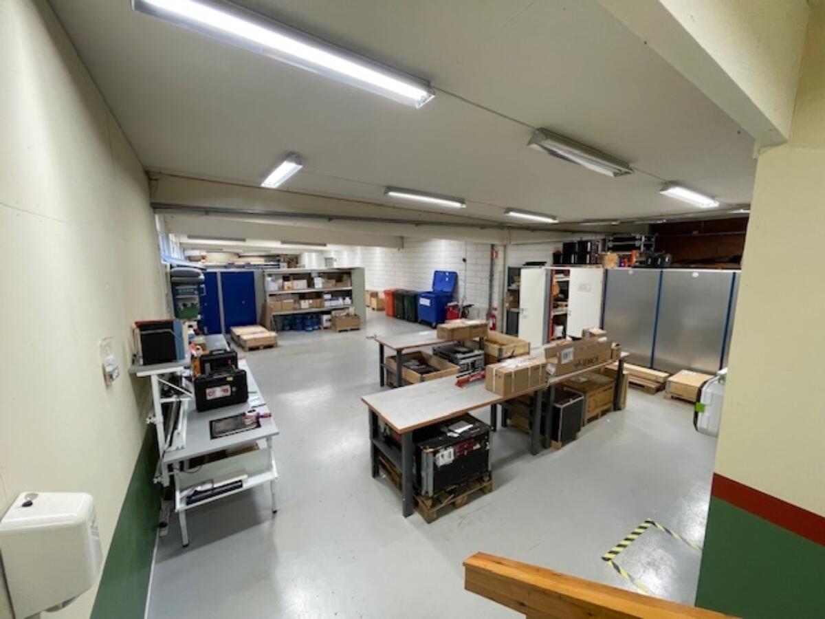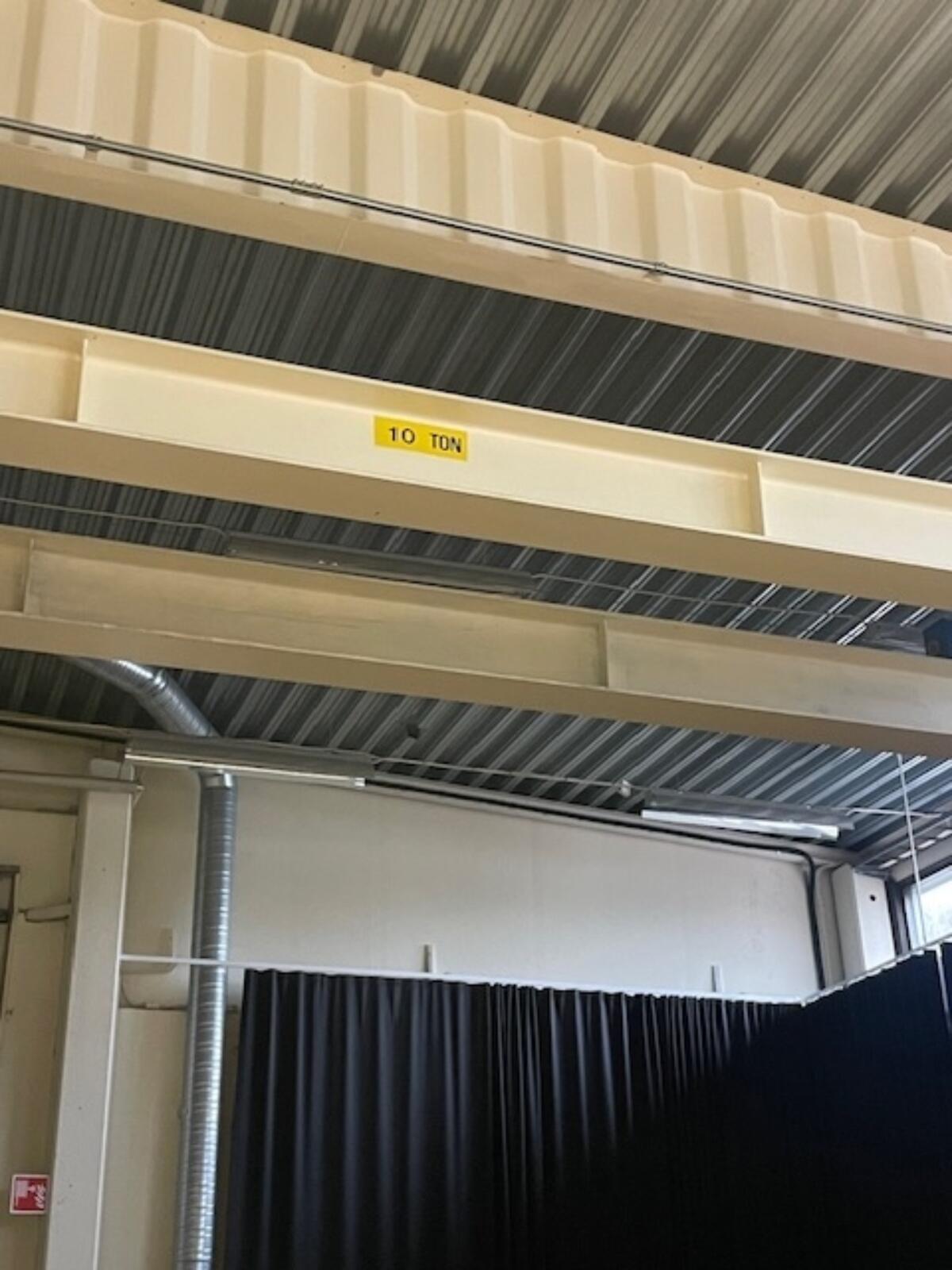 Den generösa lagerdelen har en takhöjd på cirka 6,5 meter under balk, och porten mäter omkring 6 meter i både höjd och bredd. Ett entresolplan finns i dag installerat, men kan enkelt tas bort för att utnyttja hela takhöjden vid behov. En travers på 10 ton finns också.
