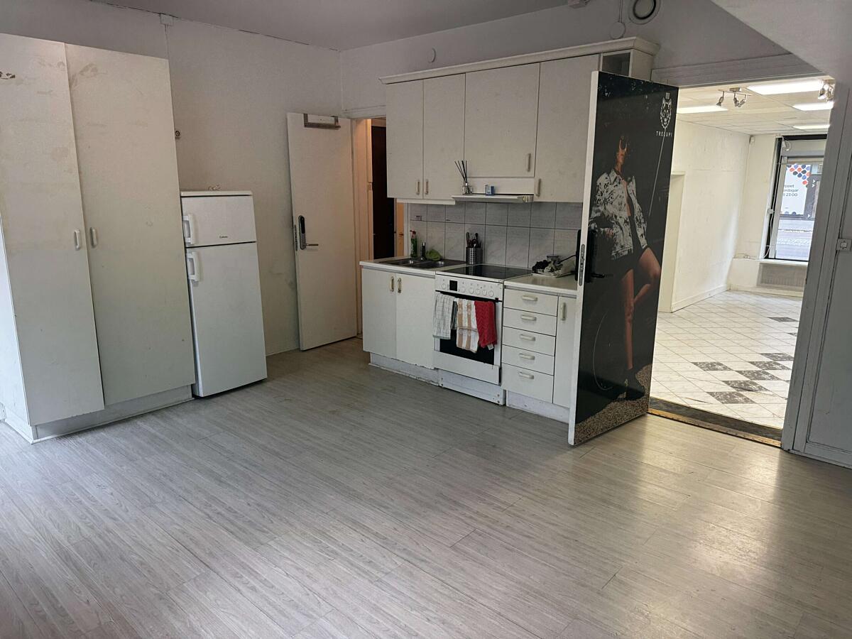 Längre in i lokalen finns bra personalutrymmen med kök, unchrum och WC.
