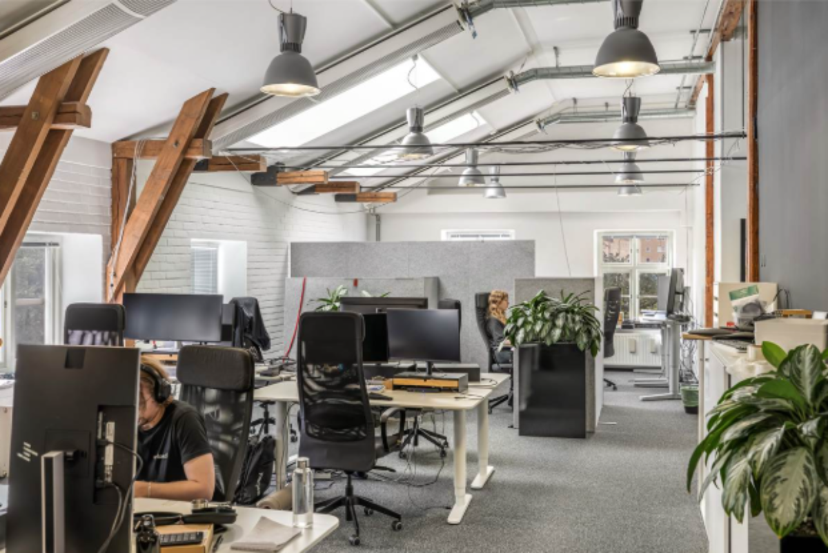 Charmigt kontor med industrikänsla