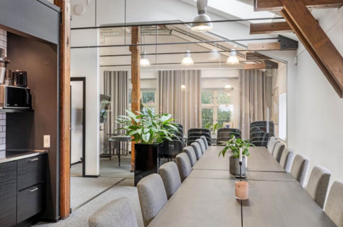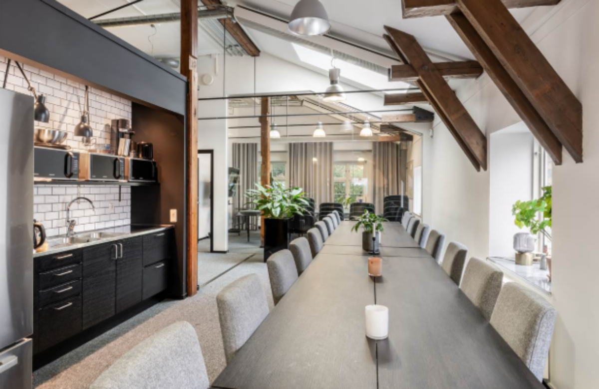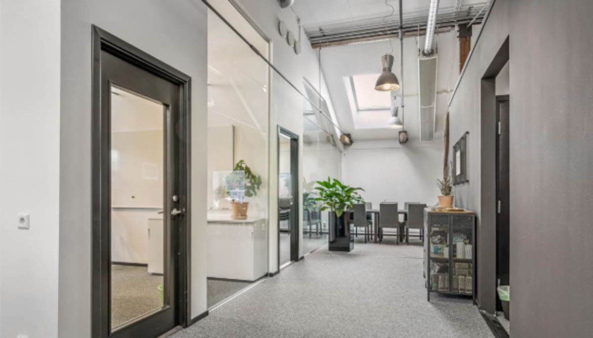 Med ljusinsläpp från tre håll finns nu en härlig kontorslokal som slukar många arbetsplatser. Mestadels öppen planlösning, två mötesrum och utgång till en egen balkong.