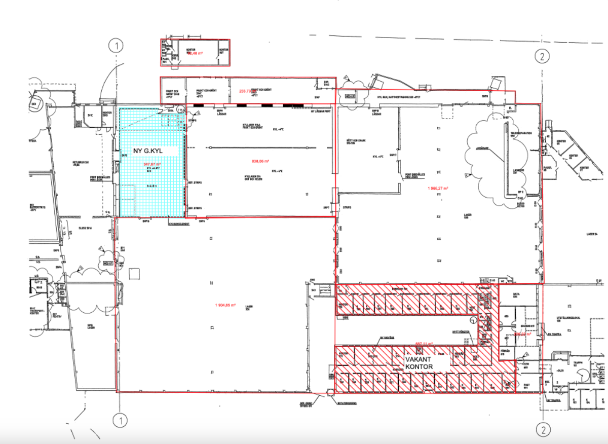 Alternativ 3: 1 966 m² innehållande lager med kylrum om 1 966 m², kontor finns att hyra till om ca 300 m².
