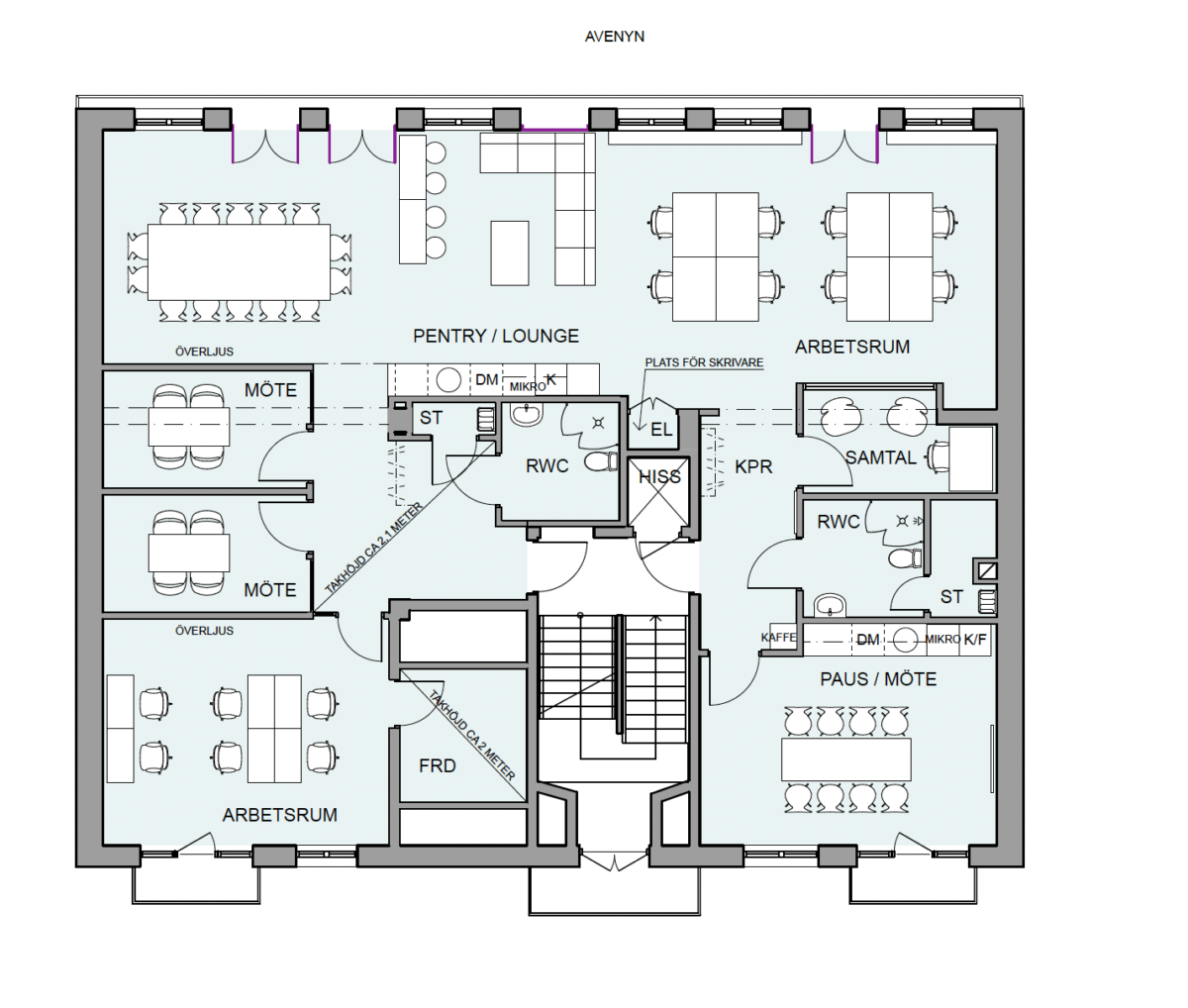 Lokalen lämpar sig utmärkt för två företag att dela då det finns två kök och två ingångar. Det betyder att man kan dela på kontorskostnaderna och ändå njuta av toppmoderna lokaler och ett utmärkt läge mitt på Avenyn!