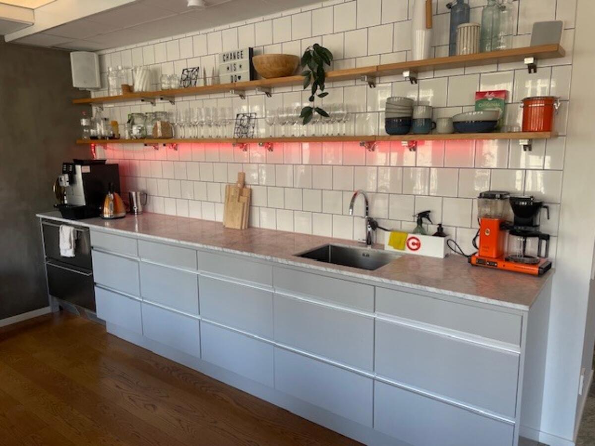 Kontorslokalen erbjuder välplanerade ytor anpassade för ett brett spektrum av arbetssätt. Här finns en inbjudande lounge i öppen planlösning med pentry och gemensamt köksbord – en naturlig samlingsplats för luncher och informella möten. Dessutom finns plats för skrivbord för mer fokuserat arbete samt flera mötesrum och Teams-rum - precis vad nutida företag behöver idag.