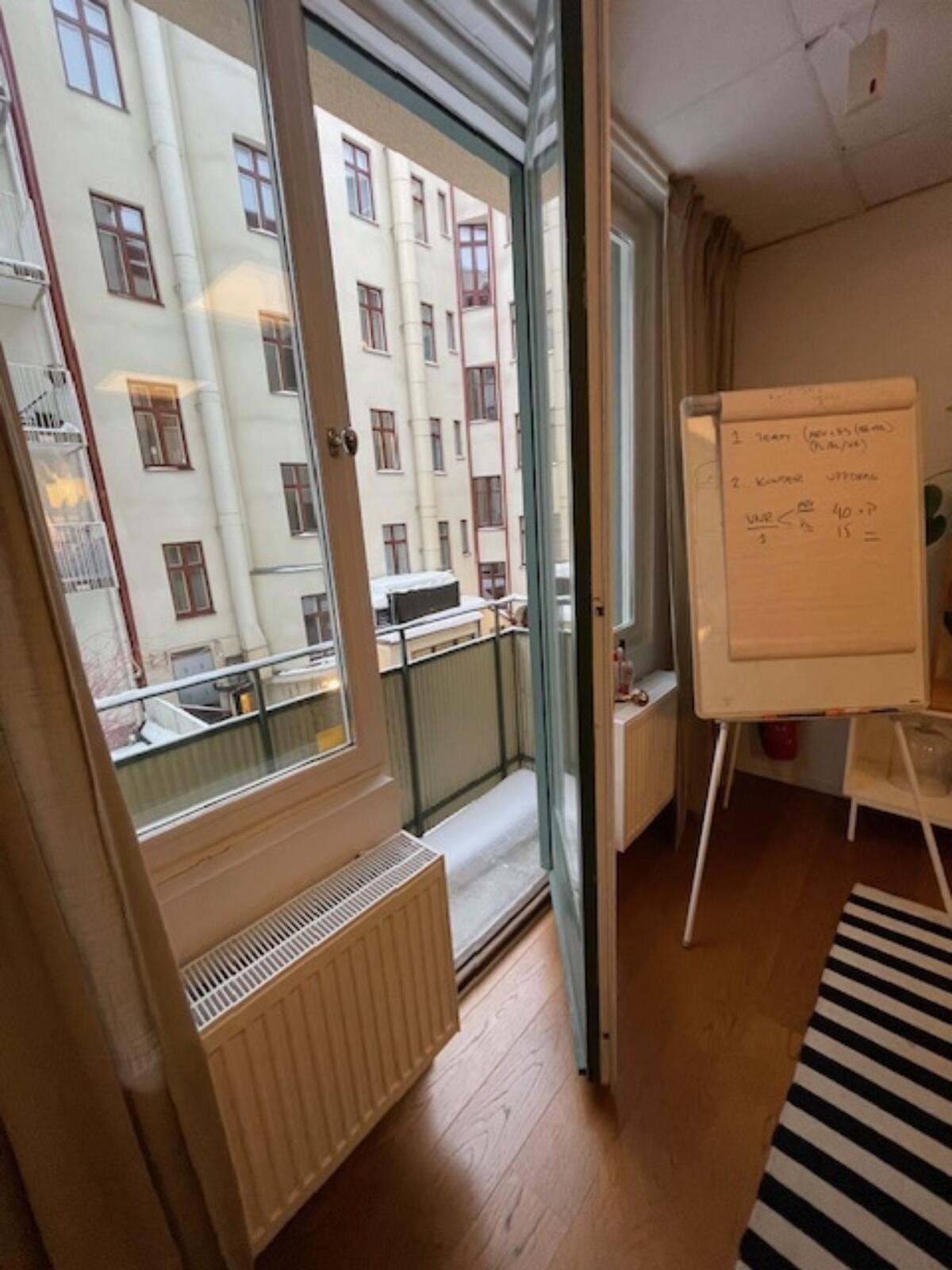 Lokalen har utsikt över Avenyn och ger en tydlig närvaro i stadens puls. Från två av mötesrummen finns en mindre balkong som blickar ut över en stillsam innergård, vilket skapar en fin kontrast mellan det urbana och det avskilda.