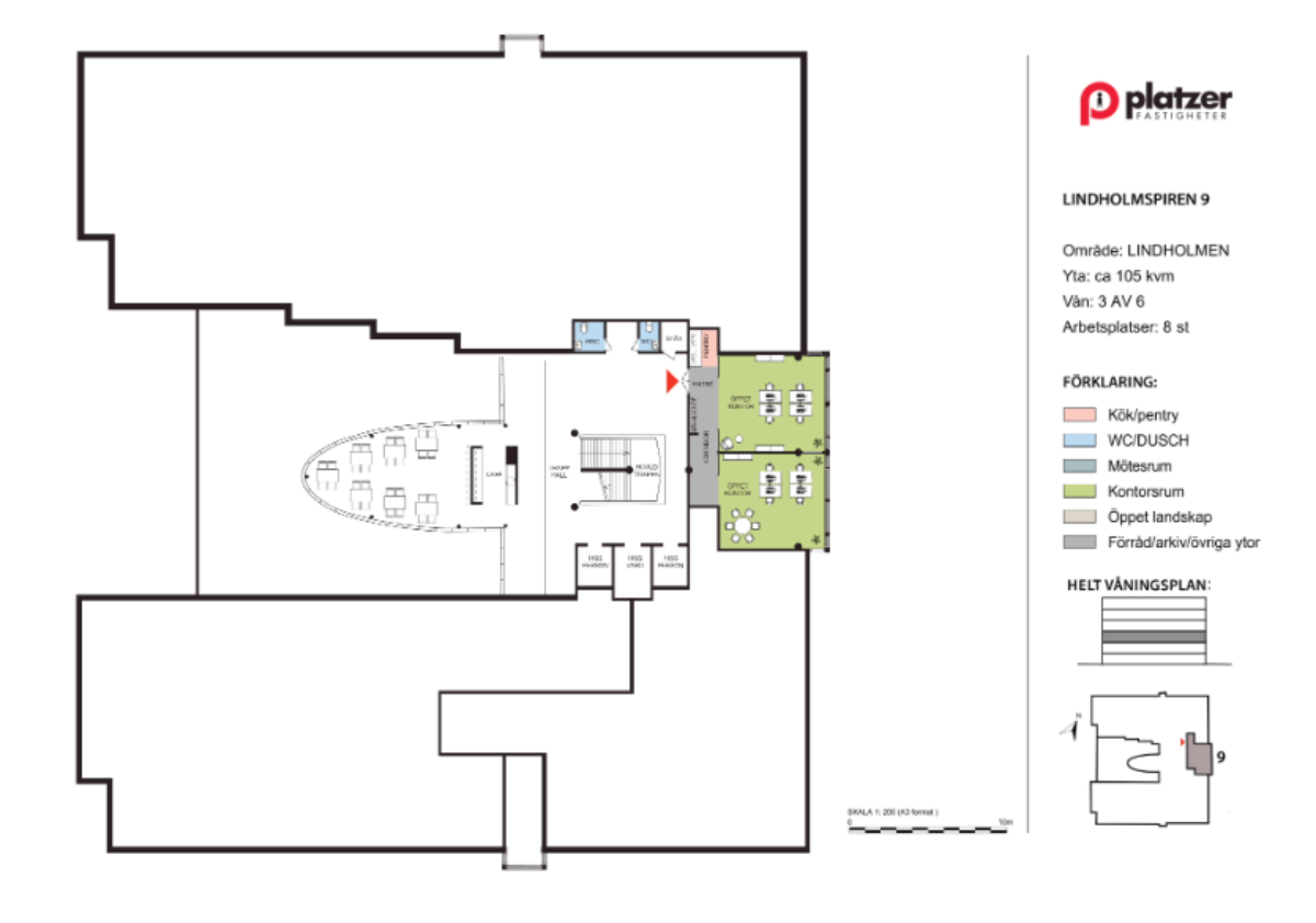 Ett mindre, privat kontor för cirka åtta personer med tillgång till ett brett serviceutbud. Pentry och WC delas med andra, och det finns flera mötesrum, lounger och öppna ytor. Här möts det privata och det gemensamma – en plats för både fokus och trevliga möten.