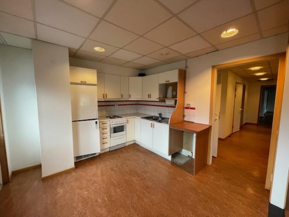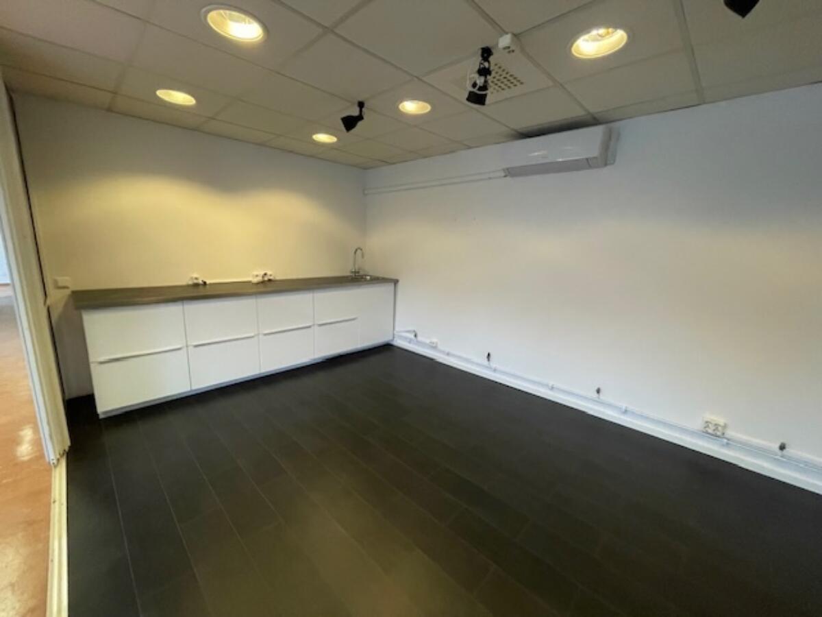 Den här lokalen kan med fördel användas till förslagsvis butik och showroom i markplan. En trappa upp har man kontor, mötesrum, pentry, WC och övriga personalytor.