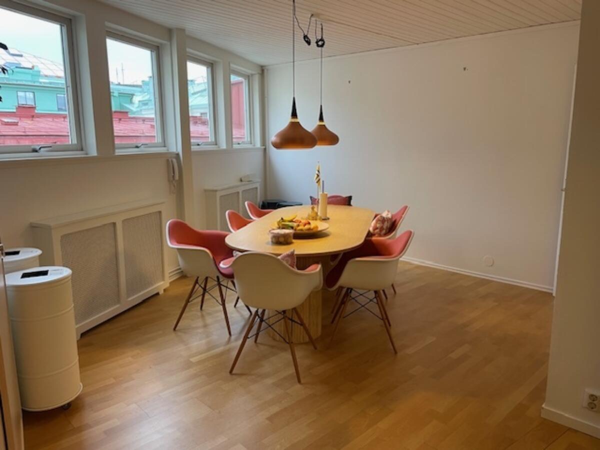 Högst upp i huset med trevlig utsikt över Lilla Torget och Stora Hamnkanalen.
