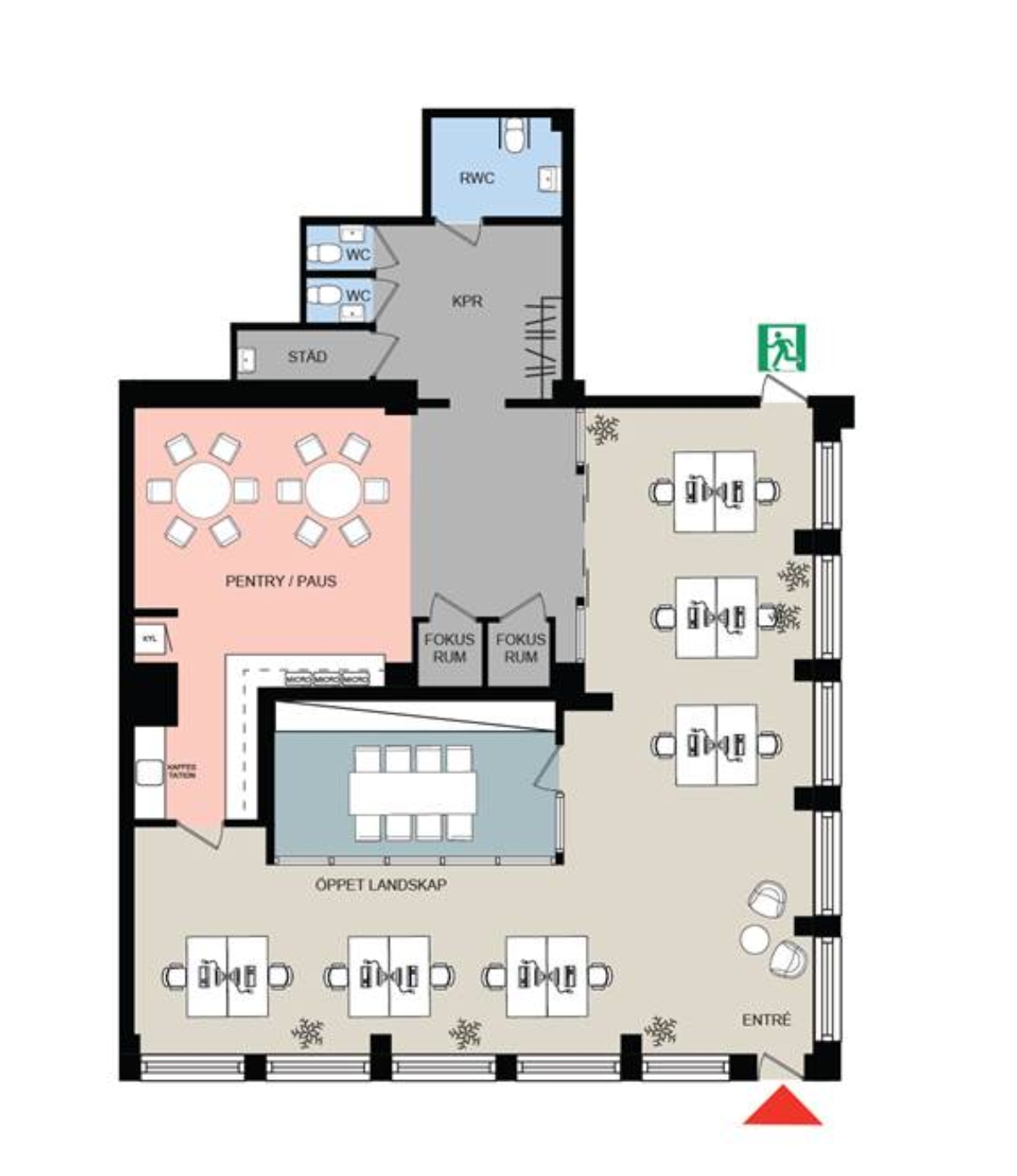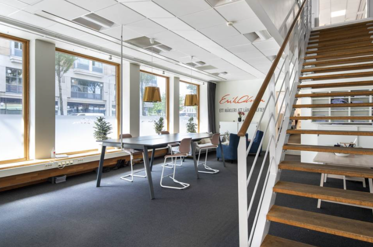Byggnaden har dessutom gemensam reception, tillgång till en välutrustad konferensanläggning samt en ljus och inbjudande innergård med bekväma sittplatser – perfekt för en stunds avkoppling.