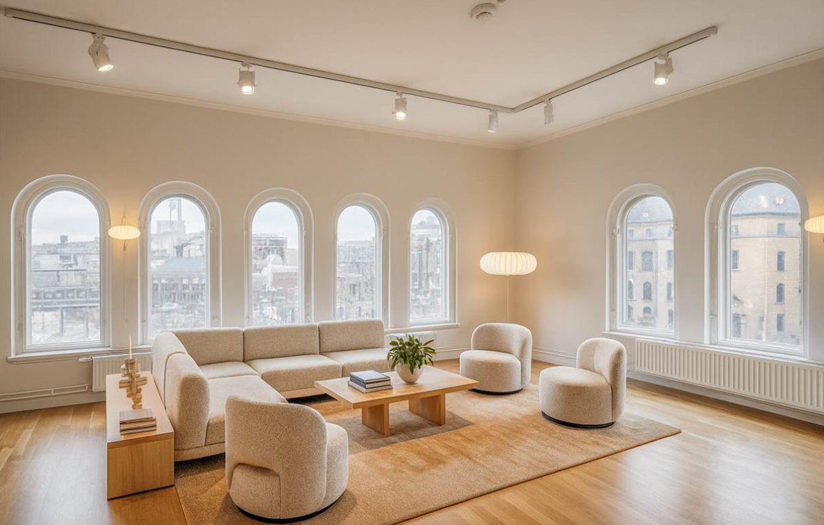 Fastigheten erbjuder fyra våningsplan med stora möjligheter att forma lokalerna efter era behov – kontor, mötesrum, ytor för samlingar och inspirerande interaktion mellan kollegor.