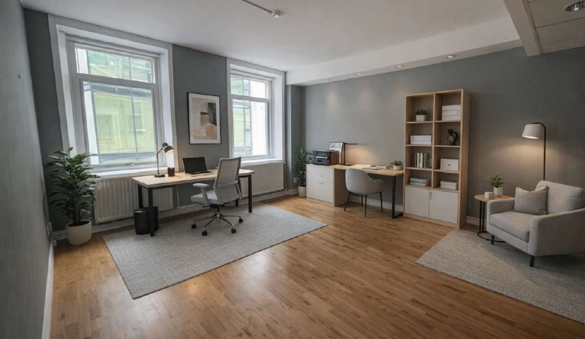 Lokalen har stor potential och väntar på att få nytt liv. Här finns möjligheten att vara med och påverka både utformning, ytskikt och färgsättning – skapa ert drömkontor precis som ni vill ha det! De första bilderna är AI-förbättrade som kan ge inspiration till hur man kan inreda och möblera.