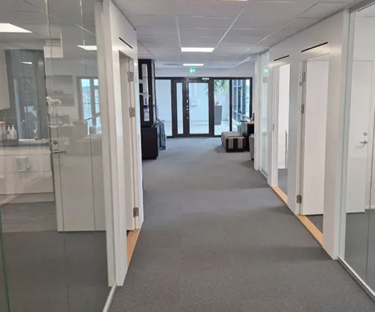 Ytskikten bidrar till en trivsam arbetsmiljö med ljuddämpande textilmattor samt akustikundertak. Rummen är uppbyggda med ljudklassade systemväggar, glas och dörrportaler. Belysningen består av dimbara led-plattor.