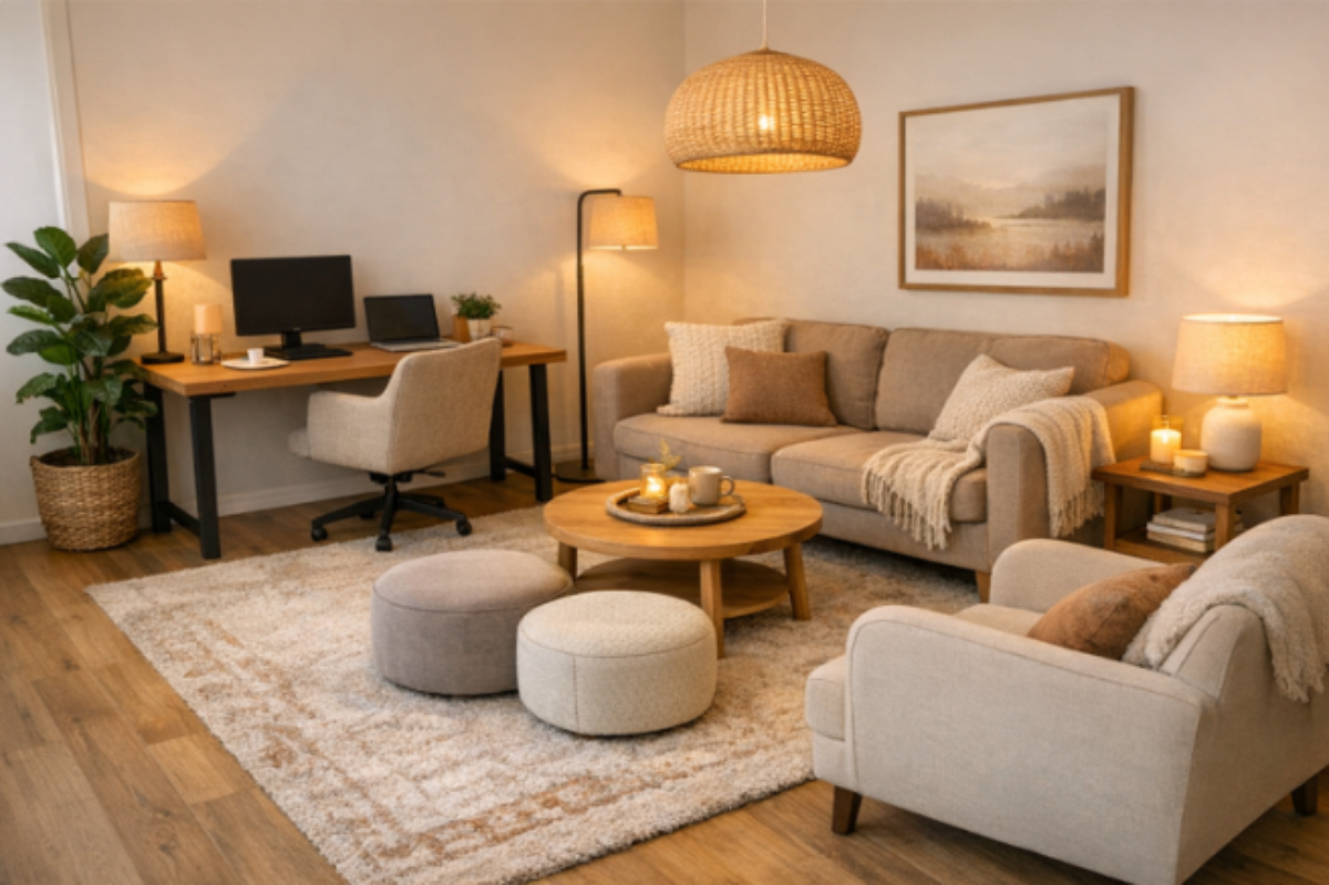 Interiörbilderna är AI-förbättrade för att få inspiration till hur man kan möblera och inreda.